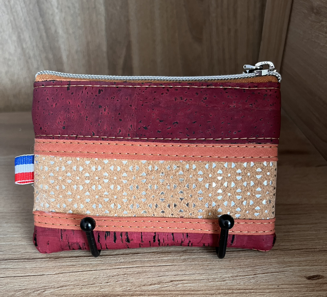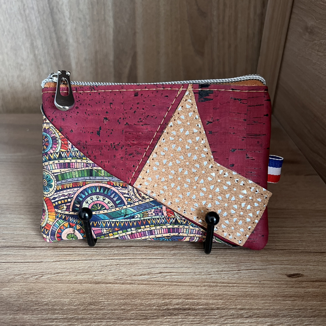 Apportez une touche de couleur et d’originalité à votre quotidien avec cette pochette en liège entièrement cousue à la main. Son design géométrique unique associe trois lièges aux styles complémentaires :